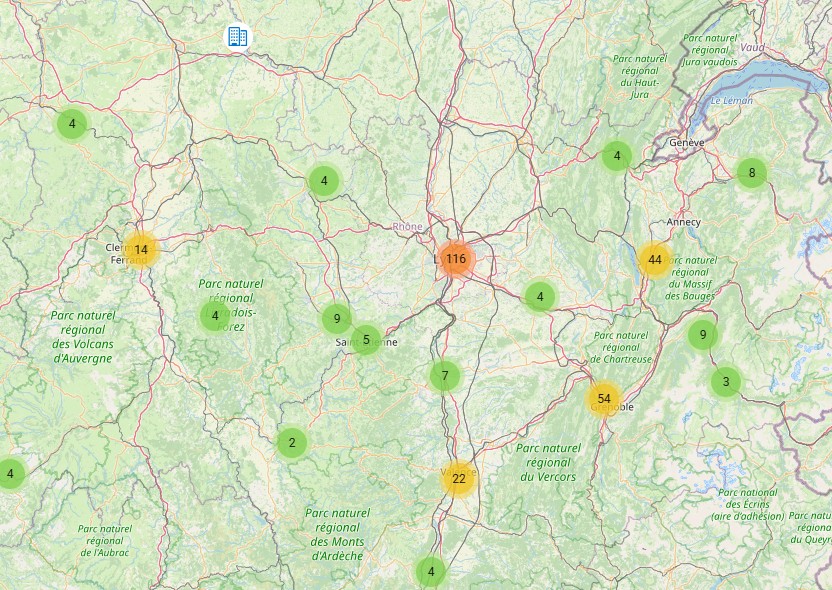 72% des entreprises recensées dans 3 grandes zones d’emplois : Lyon, Grenoble, Chambéry